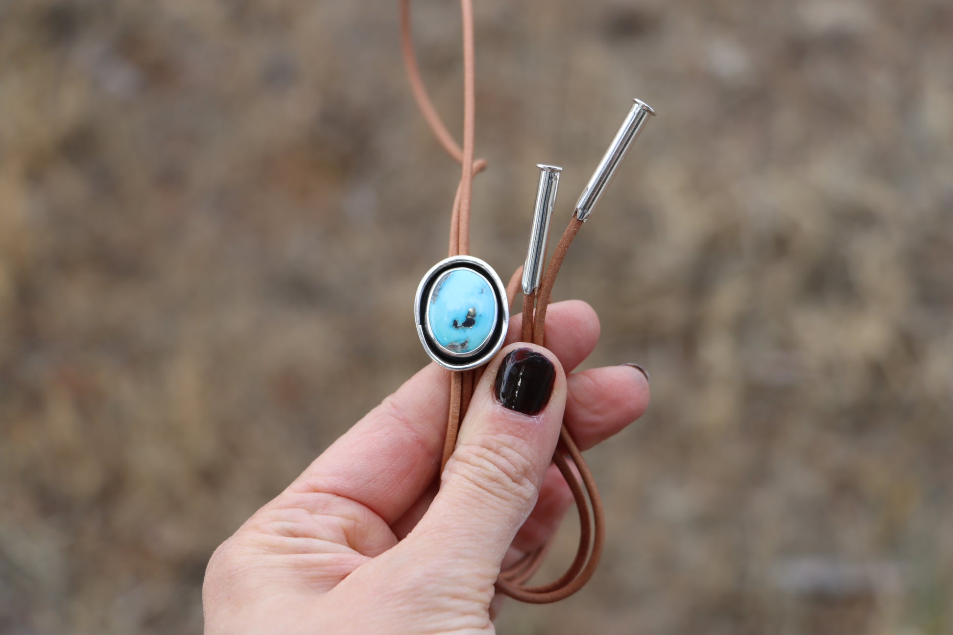 - Tan greek leather cord (2.2mm) accompanied by two 1 inch handmade sterling silver bolo tips.