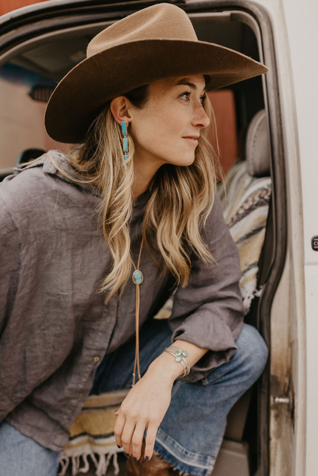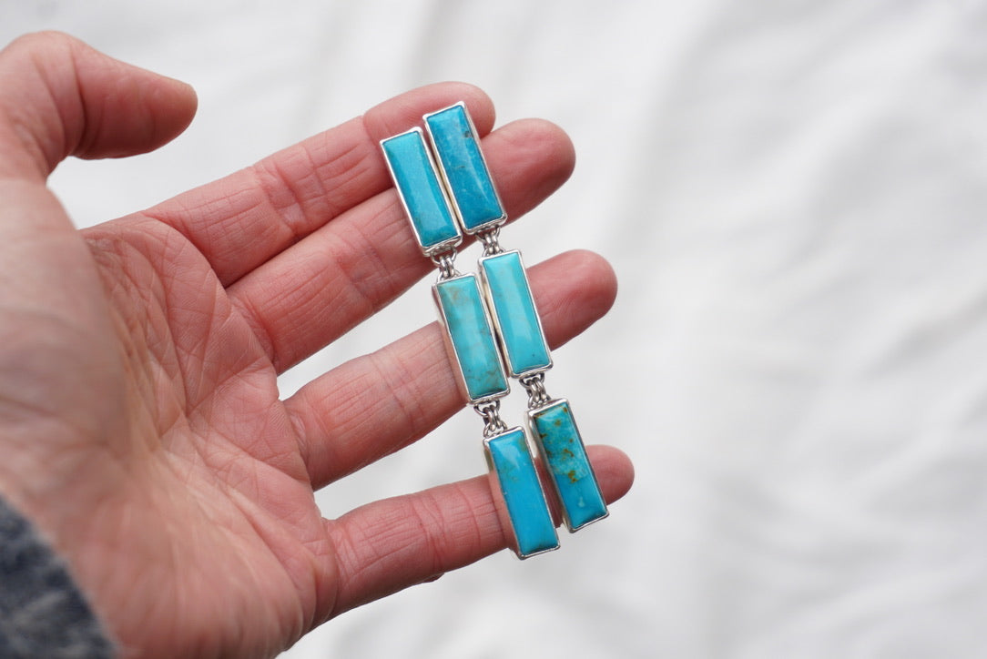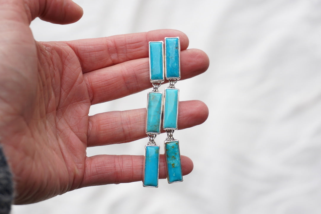 Cascade Earring featuring all Kingman Turquoise!