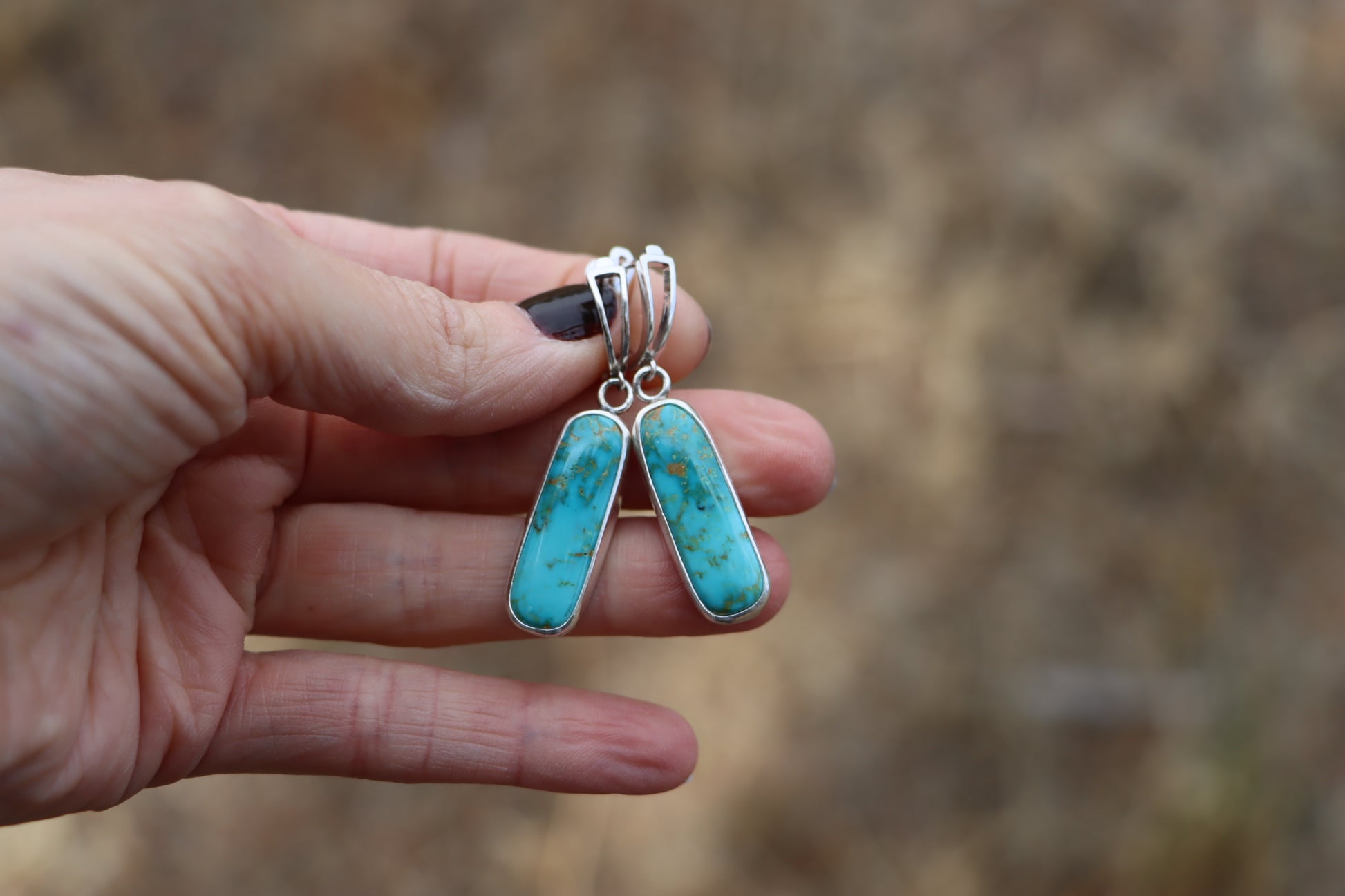 A timeless pair of earrings featuring stunning Royston turquoise set in sterling silver. Each stone showcases the rich blues and soft brown matrix that make Royston so loved. Finished with sterling lever backs for a secure and comfortable fit.