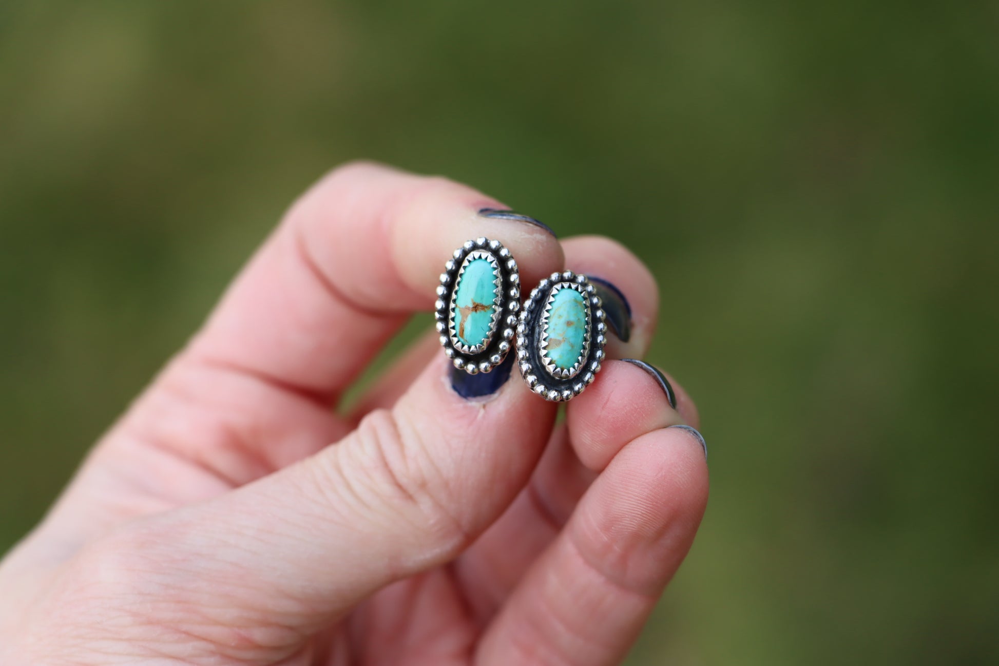 This listing features one pair of Sterling Silver & Royston Turquoise Studs.