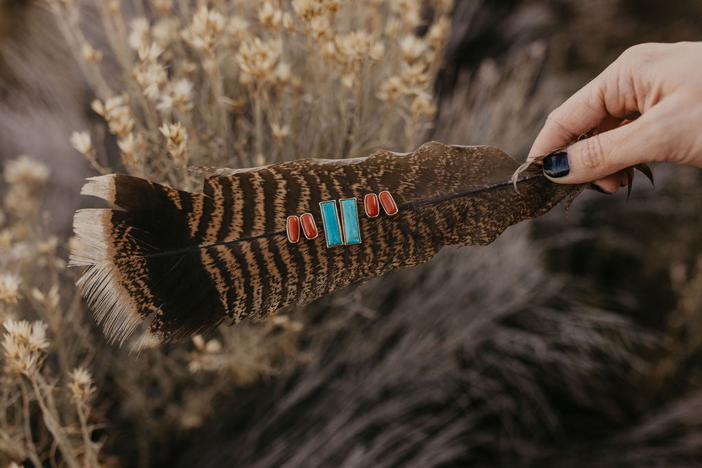 Stud Earrings - Coral + Gold #1