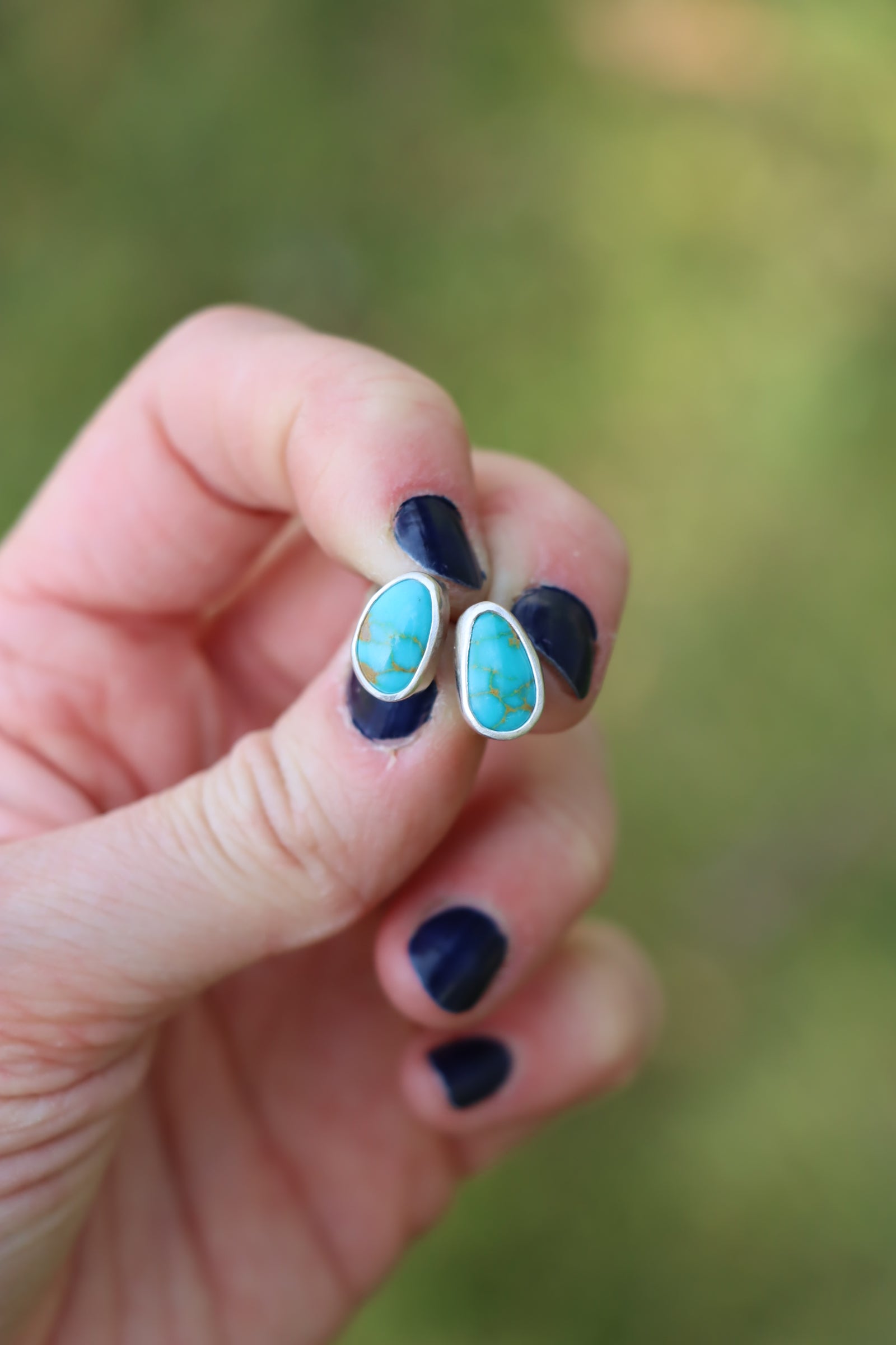 This listing features one pair of Sterling Silver & Kingman Studs.