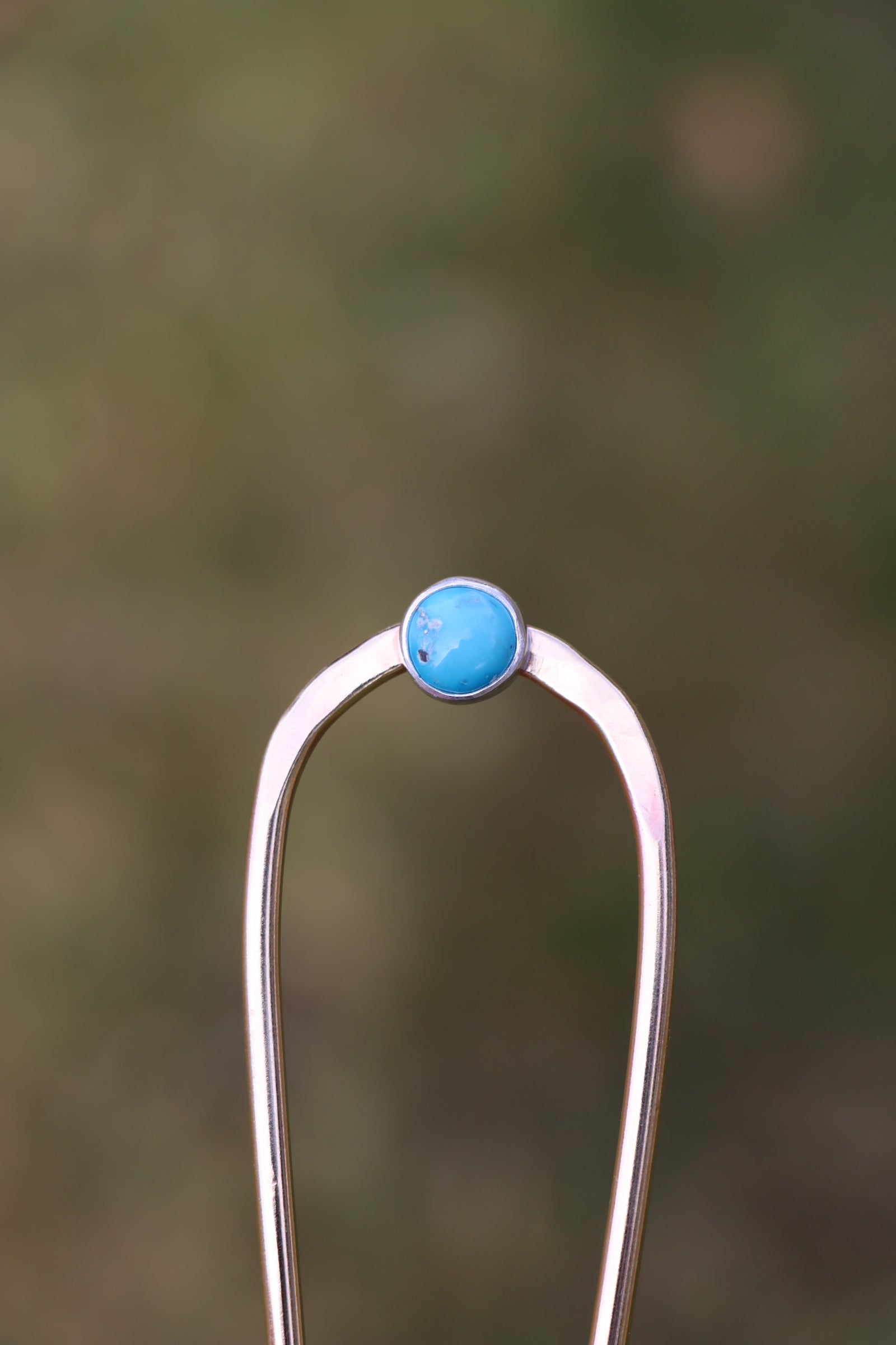 Hand-forged from solid brass, this hair fork is finished with a bezel-set turquoise stone. Designed to secure your hair with ease, each piece balances function and adornment. Simple, sculptural, and made to be worn daily.